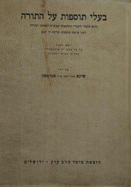 בעלי תוספות על התורה: והוא חיבור דיבורי התוספות שבש"ס לפסוקי התורה