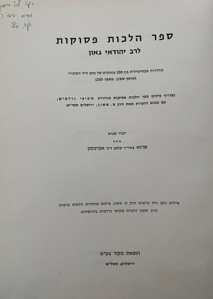 ספר הלכות פסוקות/ לרבי יהודאי גאון