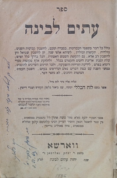 ספר עתים לבינה: מהדורת ראשונה (ורשה, תרמ"ז)