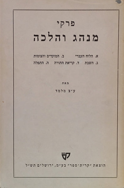 פרקי מנהג והלכה: הלוח העברי ; המועדים והצומות ; השבת ; קריאת התורה ; התפלה