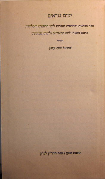 ימים נוראים: ספר מנהגות ומדרות ואגדות לימי הרחמים והסליחות לראש השנה וליום הכיפוים ולימים שבינתים