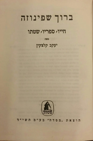 ברוך שפינוזה: חייו, ספריו, שטתו