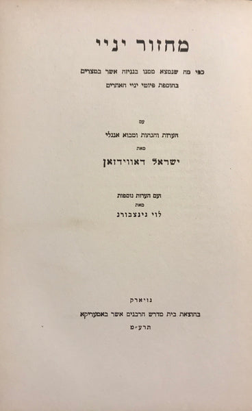 מחזור יניי/ כפי מה שנמצא ממנו בגניזה אשר במצרים בהוספת פיוטי יניי האחרים/ MAHZOR YANNAI/ A LITURGICAL WORK OF THE VIITH CENTURY