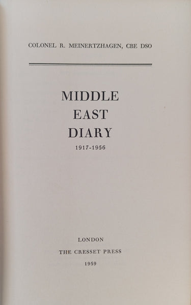 Middle East Diary 1917-1956: by Colonel R. Meinertzhagen: 1st edition