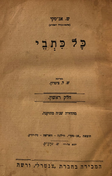 חלק ראשון של כתבי ש. אנ-סקי אשר יצא בוילנה.