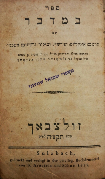 ספר במדבר/ עם תרגום אונקולוס ופירש"י, ובאור ותרגום אשכנזי