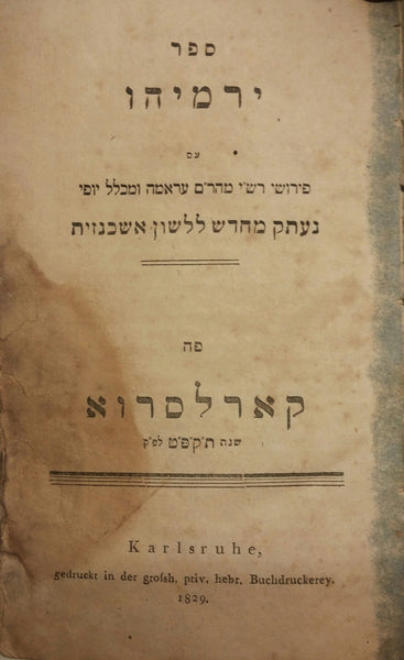ספר ירמיהו/ עם פירושי רש"י מהר"ם עראמה ומכלל יופי נעתק מחדש ללשון אשכנזית