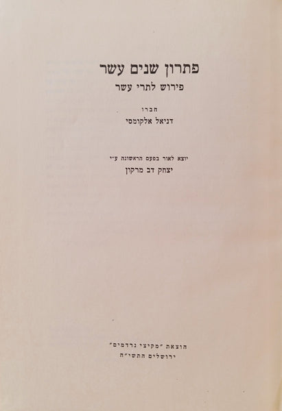 פתרון שנים עשר: פירוש לתרי עשר: יוצא לאור בפעם הראשונה ע"י יצחק דב מרקון