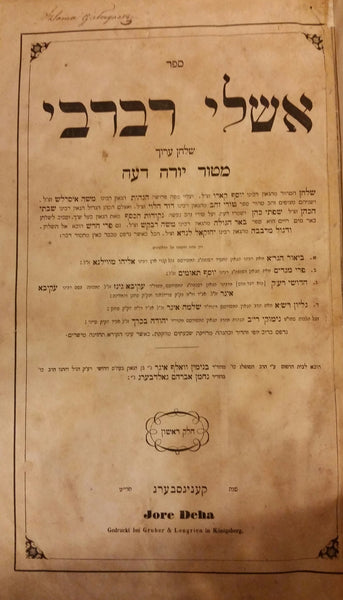 אשלי רברבי שלחן ערוך מטור יורה דעה