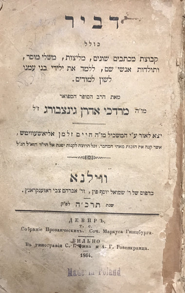 דביר/ כולל קבוצת מכתבים שונים, מליצות, משלי מוסר ותולדות אנשי שם, ללמד את ילידי בני עמנו לשון למודים