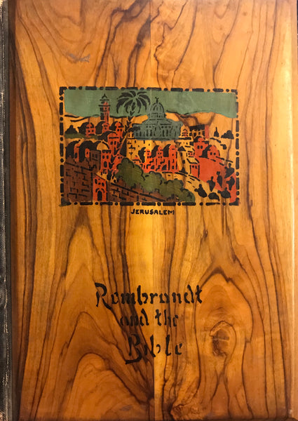 איורי התנ"ך של רמברנט. אנגלית וציטוטים מהתנ"ך בעברית. כרוך בכריכת עץ זית בסגנון בצלאל עם מראות ירושלים. הוצאת יבנה, פלסטינה