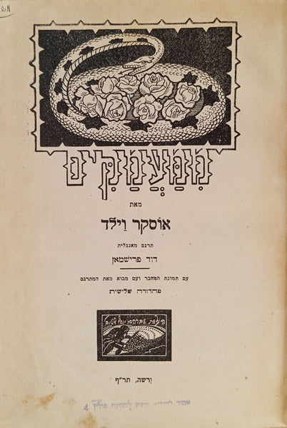 (1) "ממעמקים" / אוסקר ויילד, תרגום דוד פרישמאן, ורשה: שטיבל, 1920